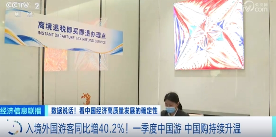 总台央视记者张嘉乔:同比增长40.2%,这是今年一季度入境外国游客的增长量。目前,我国已对38个国家实行了单方面免签政策,对54个国家实行过境免签并将停留时间延长至240小时,推出一系列入境便利化政策。离境退税,有助于降低境外旅客购物成本,是吸引和扩大入境消费的重要切入点。数据显示,2024年,办理离境退税的商品销售额、退税额同比分别增长1.2倍和1.3倍。针对退税商店偏少,退税购物选择不多等问题,在今天国新办的发布会上,相关部门负责人介绍了优化离境退税政策、扩大入境消费的最新举措。